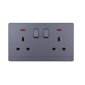 UK/British Standard 2 Gang Single Pole Switched Socket with LED 13A 250V~(PC Panel, 4 Colors)