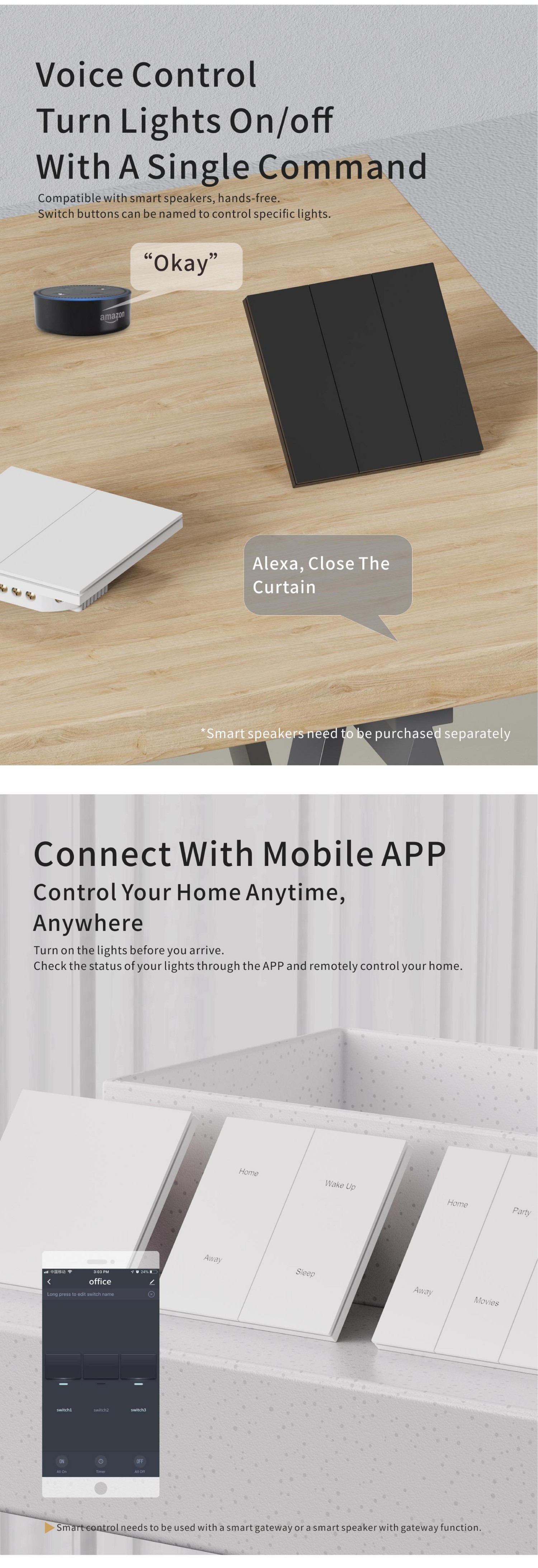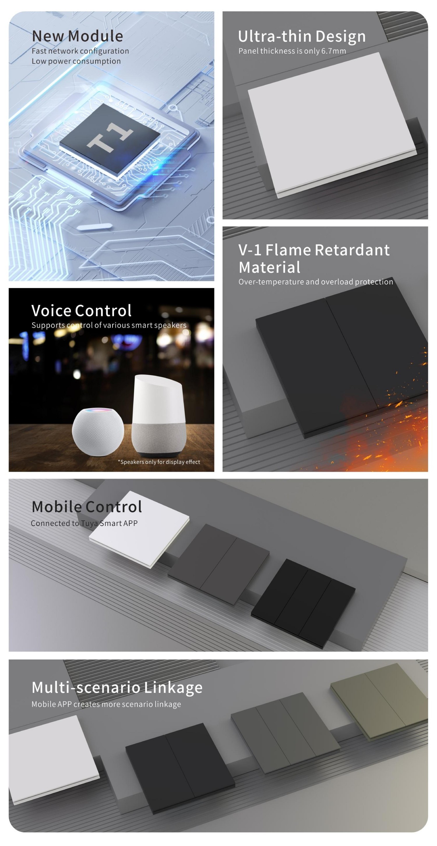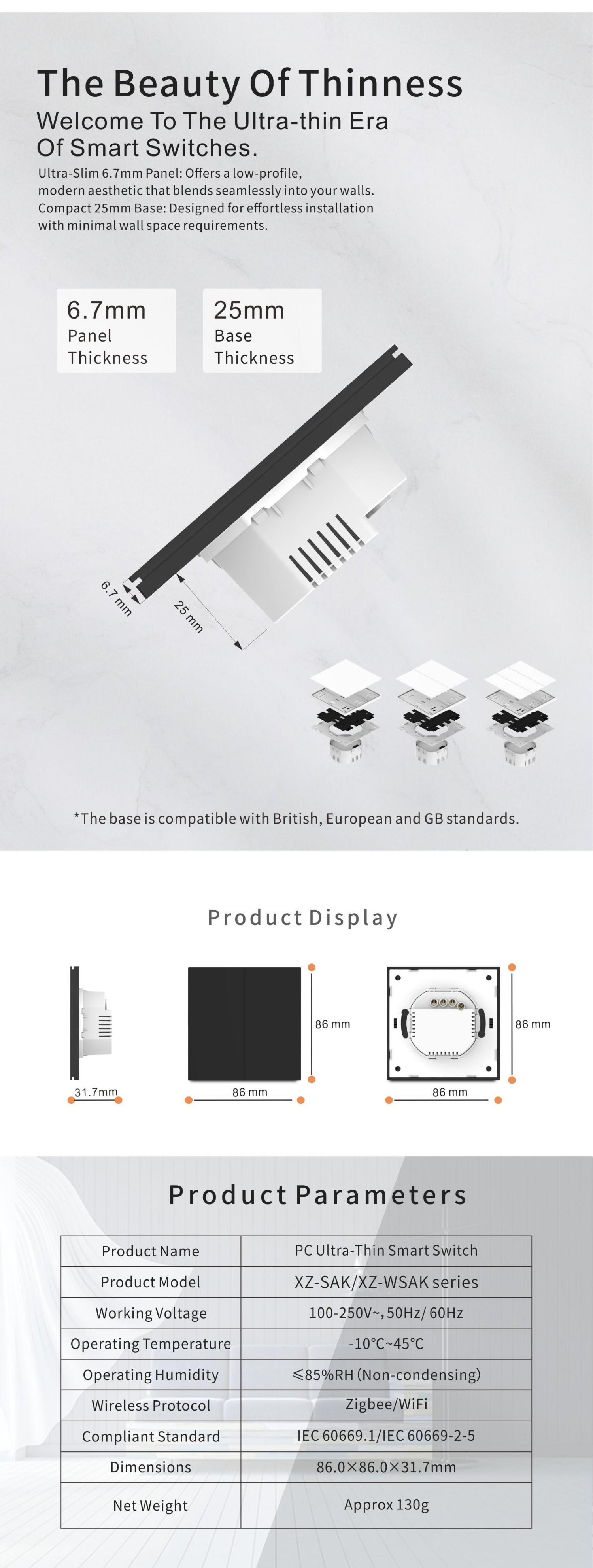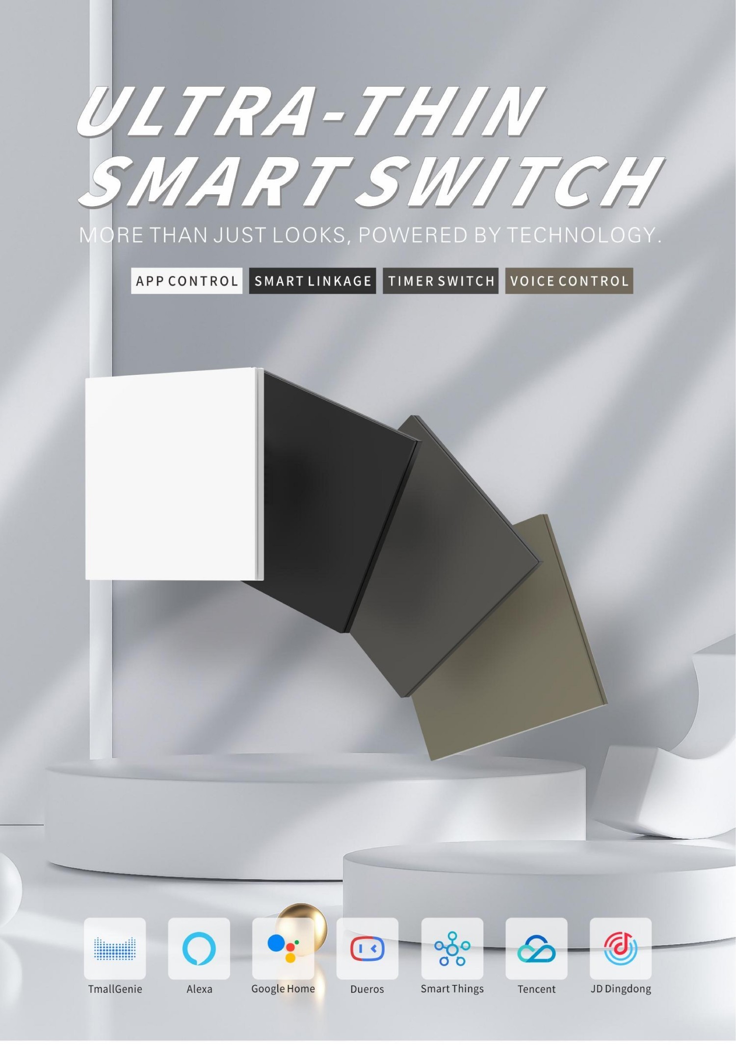 Ultra-Thin Skin-Feeling Panel ZigBee Protocol 1 Gang Smart Wall Switch L&N Version with Tuya Smart/Smart Life APP