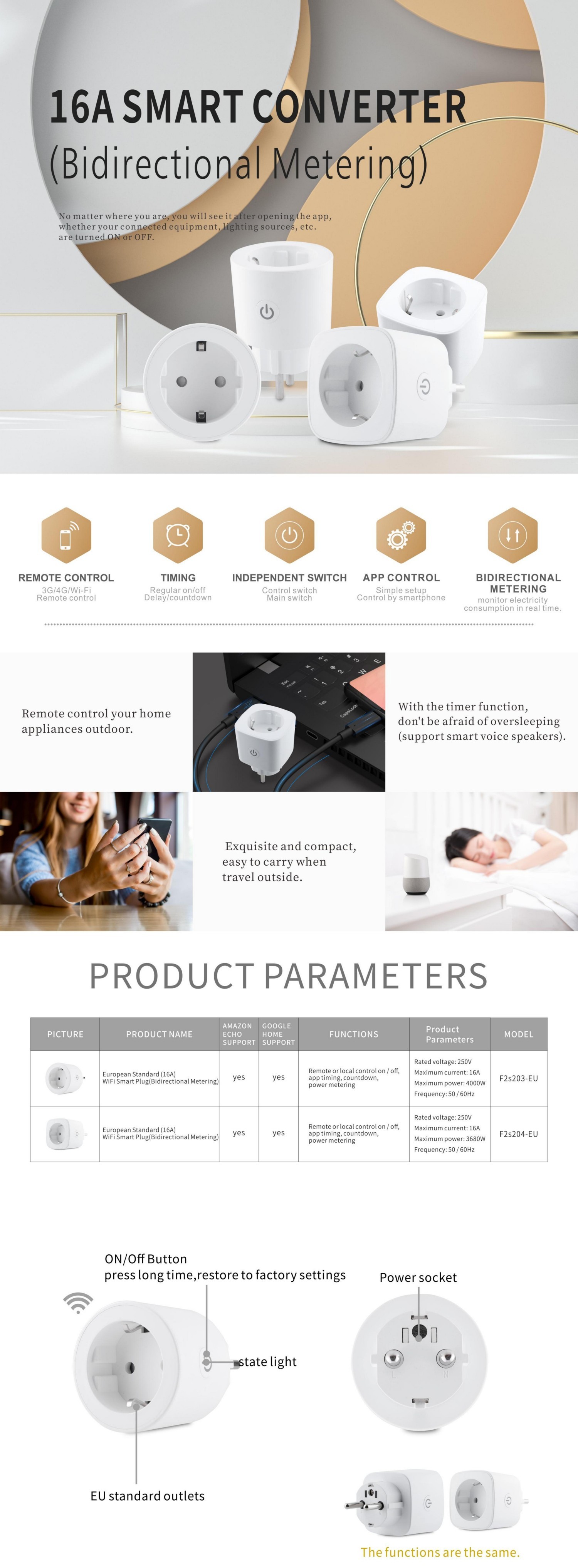 16A EU WiFi Smart Plug with Bidirectional Metering/Timmer Intelligent Electrical Power Socket Outlet Work with Alexa/Google Voice Control