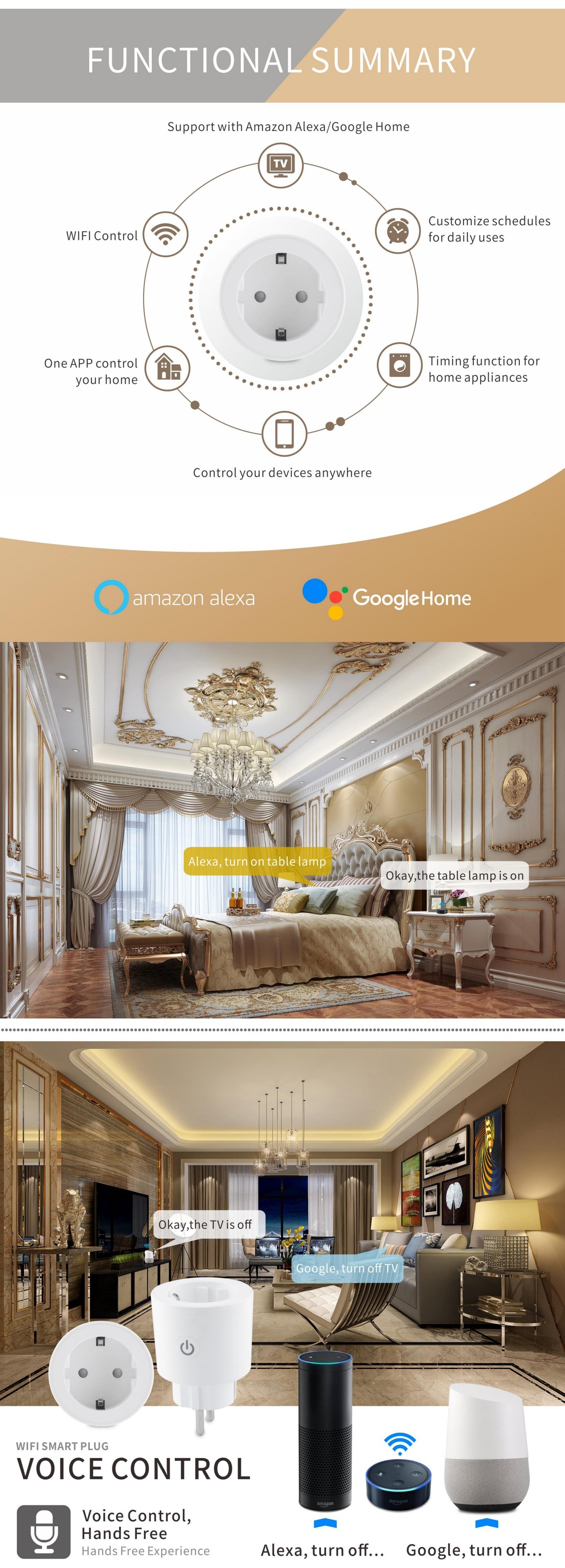 EU Wifi Smart Plug Outlet Power Metering/Timmer Function Electrical Socket for Alexa Google