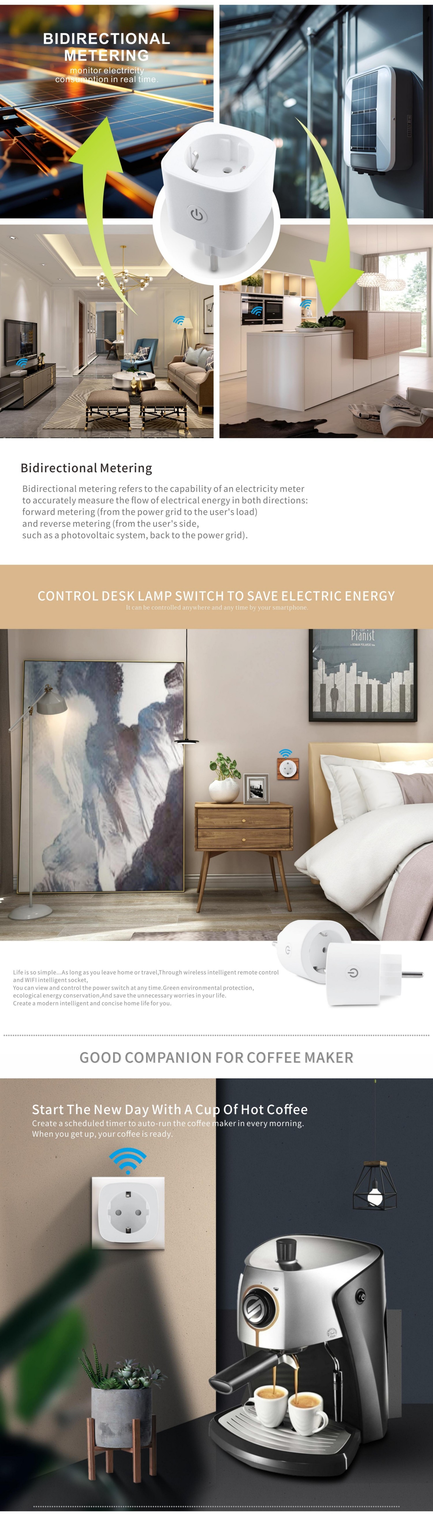 16A EU Standard Wifi Smart Plug Power Socket Outlet with Bidirectional Metering Tuya Smart APP